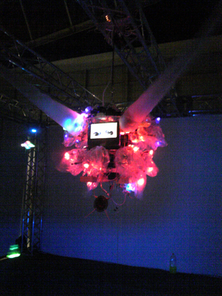 パソコンのファンを使ってビニールを膨らませて動くオブジェがあったり。