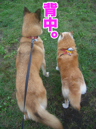 公園でななちゃんと並んでる背中。