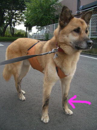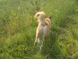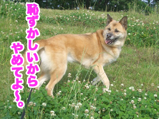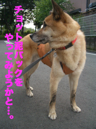 昼まで降った雨の後、散歩中に畑の端でオシッコした雷文はそのまま畑を駆け抜けようとしたら思った以上に土が柔らかかった様で・・・埋まってしまいマシタ・・・。先に歩いてた母ちゃんは後ろで必死に土から抜けようと暴れる音で気が付きマシタ。・・・笑タ・・・。
