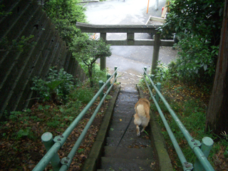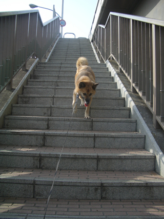 今日はいつもと違うコースを通っての散歩。図書館裏の階段降りて。