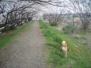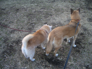 『鼻』は母ちゃんの手の甲に鼻をくっつけるって云うだけのコマンドなんですが、散歩中に一人で先に進んだ雷文に『鼻』のコマンドかけると鼻をくっつける為に母ちゃんの斜め後ろにいなければならないので自動的に立ち止まったり戻って来たり。結構使えるコマンドだったり。