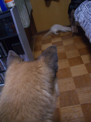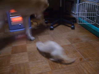 ども。今朝は真綾の発作で起こされた母ちゃんデス。真綾が発作起こしてる間、雷文はかなり興奮状態。真綾に飛びかかって押さえ付けようとしたり甘噛み?したり。雷文を無理矢理退かして真綾がオシッコしてもいい様にトイレシートを敷いたり。取り敢えず雷文が邪魔デス。