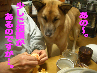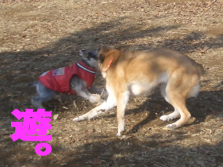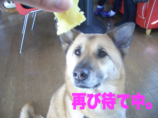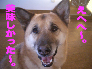 結局帰ったのが5時過ぎ。昼からだから結構な散歩デシタ。でも久々の犬づくしな一日。ホントに楽しかった〜。それにしてもチョット食べ過ぎだよオニイサン。夕食でも餅食べちゃいマシタ。餅が上顎にくっついて必死に取ろうとしている雷文の姿がトテモ可愛らしかったデス。