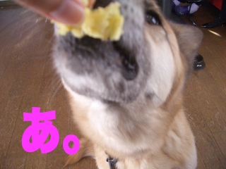 イモ好きな雷文。待てさせてたのに写真撮ろうとした瞬間にかぶりつき。我慢の限界だったらしい・・・。