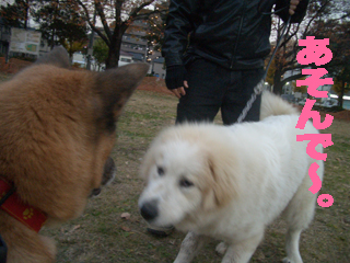 先週会った時は仲良くしてた雷文。今日は機嫌が悪かったのか犬社会の厳しさを一方的にJr.に軽〜く伝授。でも全く気にしないJr.。って云うか遊びの範疇だったらしい。大物の予感・・・。