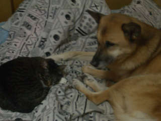結局見つけられなかった雷文。家で真綾を「真綾いるよ〜」と云うと無視するのに「ニャンコいるよ〜」と云うともの凄い探すワンコ。で、久々に河原まで行って写真撮るぞ〜。と思ったらデジカメのバッテリー落ちタ。河原での穴掘りする雷文や、木の枝バキバキする雷文や、川に入ろうとする雷文や、その辺に落ちてたビニール袋振り回す雷文や、その辺に落ちてた靴下振り回して大喜びする雷文の勇姿をココにアップするつもりだったのに〜。残念・・・。