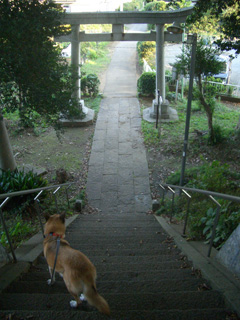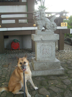 途中の神社で狛犬に挨拶してチョットだけテンション上がった雷文。河原に着いた雷文はいつも通りに・・・。