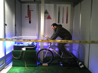 ブーズの中で自転車漕ぎ続けて発電してる人がいたり。