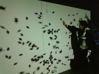 壁にプロジェクタで映し出されたゴキを叩くと・・・・増える増える・・・。最初は1匹なのに一気に皆で叩き出したらゴソッと!!!こう云うのってTVとかで紹介されてるの見たりするけど体験するのってなかなか機会がないから初体験!!!もうホントに楽しかった〜。